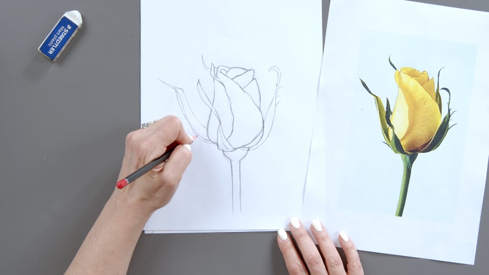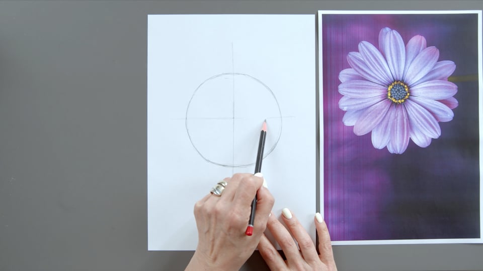 בשיעור זה תחילה נעתיק את הסקיצה של הורד לנייר איכותי ולאחר מכן נמשיך בצביעת עלי הכותרת.