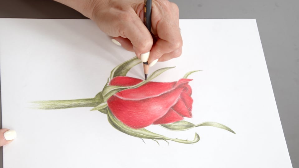 ציור של ורד ריאליסטי בצבעי עיפרון.