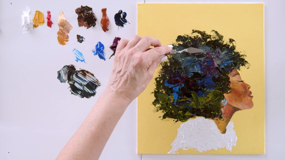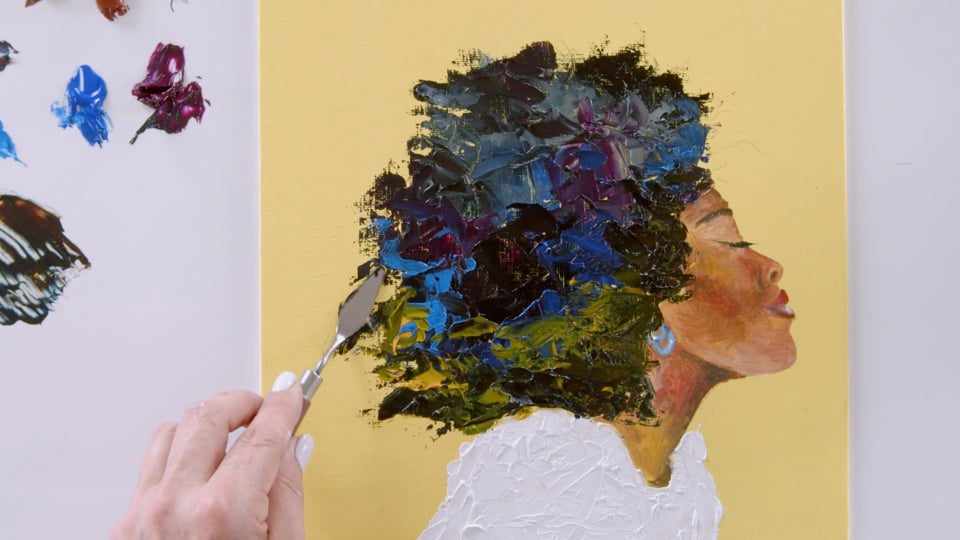 נצבע את שיער האפרו תוך שימוש בסכיני הציירים ובמגוון צבעים.