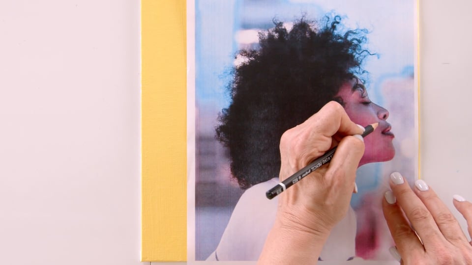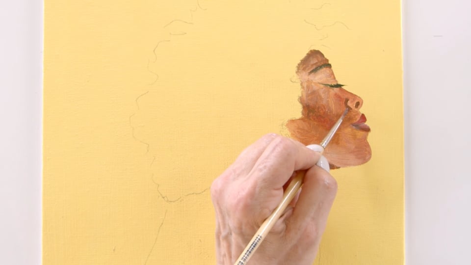 נתחיל את הציור השלישי שלנו בהעתקה מתצלום תמונת פרופיל של אישה עם שיער אפרו.