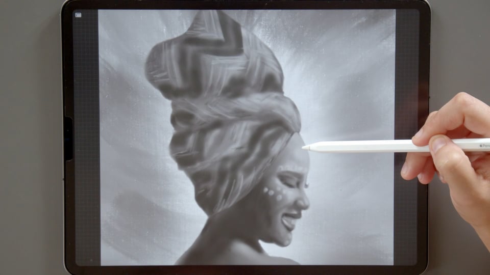בקורס זה נלמד לצייר פורטרט של אישה אפריקאית בגווני שחור לבן. תחילה נערוך את התמונה ואת הקנבס כך שיתאים לעבודה בטכניקת הרשת (גריד). בהמשך, תוך התבוננות בדמות ושימוש בקוי העזר נרשום את קוי המתאר של הדמות. נדגום מתוך התצלום מספר גוונים ונצבע בשכבת בסיס את הפנים והגוף. בהמשך, נדייק את קווי המתאר של הפנים תוך הקפדה על אזורים מוארים ומוצלים בתצלום. את הציור נסיים תוך צביעה של מטפחת הראש של הדמות, הקפדה על הקפלים וההדפס של המטפחת וצביעת הרקע להדגשת הדמות.