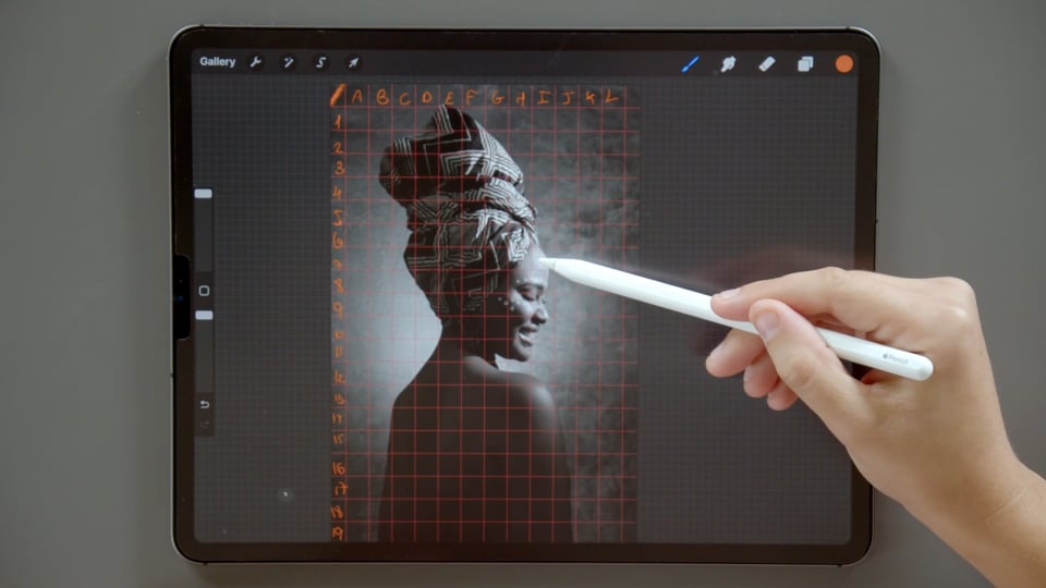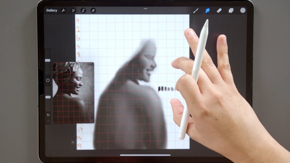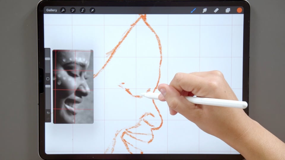 נעלה את הרפרנס לאפליקציה ונכין את הרשת (גריד), לקראת רישום הסקיצה.