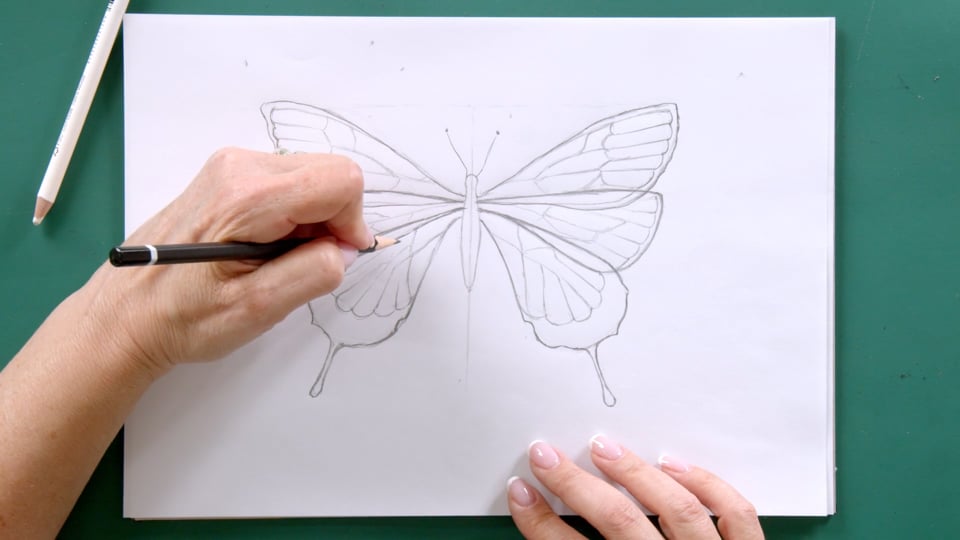 נצפע את הצורות המיוחדות המאפיינות את הפרפר ונוסיף מעט הצללות.