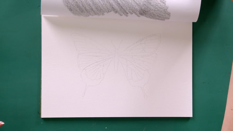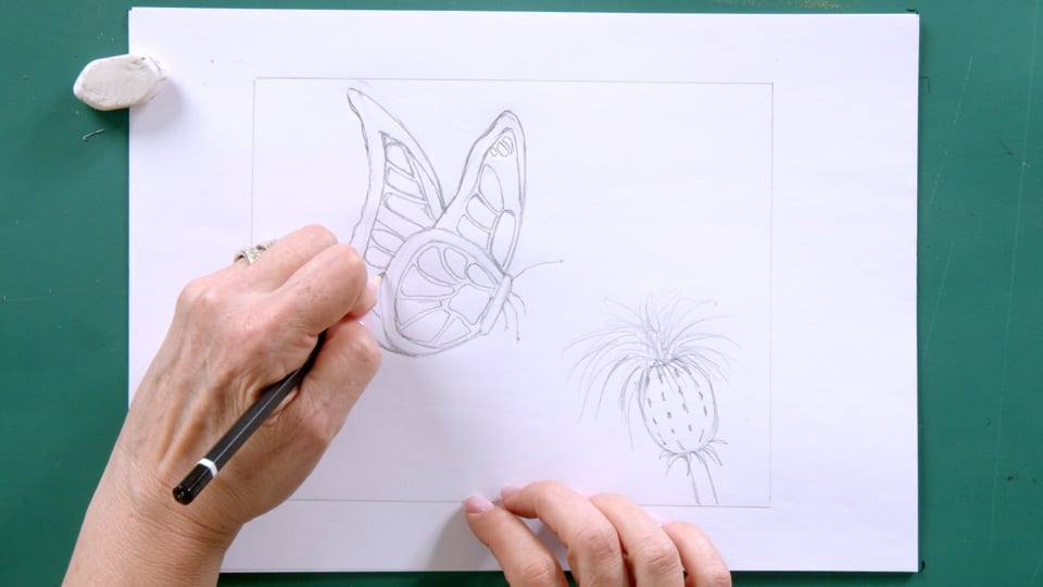 נתחיל רישום של פרפר נוסף, הפעם ממבט צד ובנוסף נצייר צמח בר.