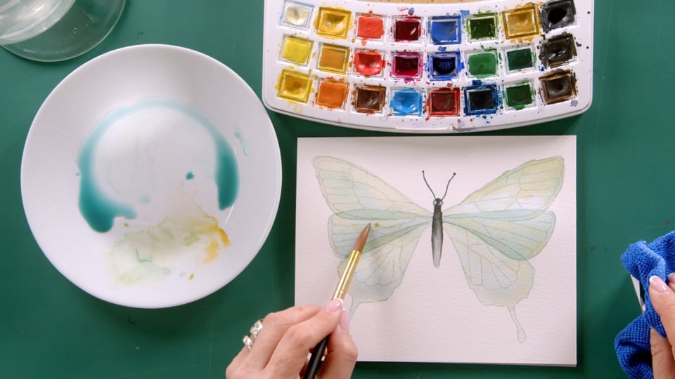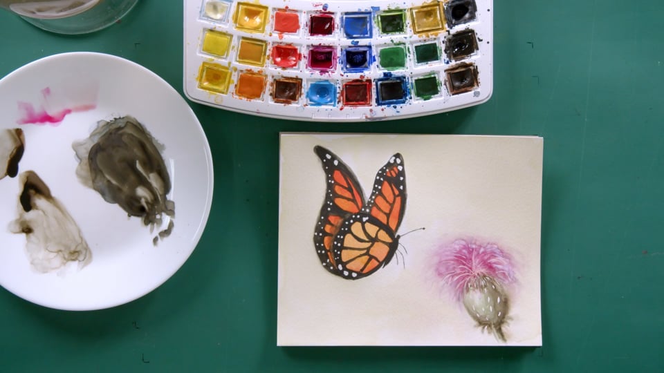 ציור פרפרים עם צבעי מים משתי זוויות שונות.