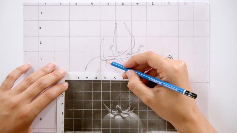 בקורס זה נלמד כיצד להשתמש בטכניקת גריד (רשת). נתחיל בציור פשוט של קווי מתאר של אגס על ידי חלוקת רשת מינימלית של הדף והתצלום. בהמשך נצייר את קווי המתאר של עגבניה ובעזרת הרשת נגדיל את התצלום המקורי תוך שמירה על פרופורציות מדויקות. את הקורס נחתום בציור של דלעת. נעתיק את קווי המתאר של הדלת ונסמן אזורים חשובים (נקודות אור ואזורים מוצלים), לאחר מכן נמשיך בצביעה של הדלעת תוך שימוש במגוון עפרונות רישום ושמירה על מעבר עדין בין הגוונים. לבסוף, נצבע את הרקע והשולחן עליו מונחת הדלעת.
