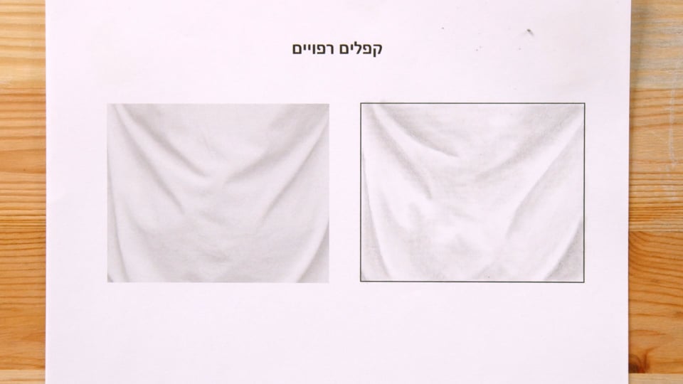 בקורס זה נלמד טכניקות לרישום בעיפרון של סוגי קפלים שונים. תחילה, נתבונן בתצלומים שונים של קפלים ונלמד מה מאפיין את הקפלים ( סוג הבד, תונה, קשירה ועוד). בהמשך נתרגל ב-3 תרגולים שונים רישום של סוגי קפלים שונים: קפלים רפויים (עדינים), קפלי ג'ינס וקפלי שרוול. בפרוייקט המסכם נצייר רגליים של חייל תוך הקפדה על רישום קפלי המכנס וקפלי הנעליים.