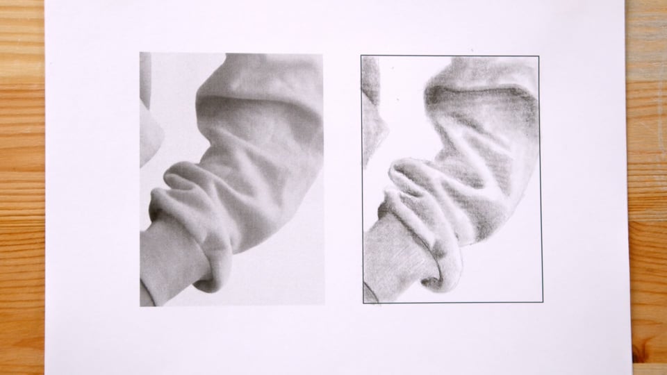 נתחיל התרגול הראשון שלנו, ציור של קפלים רפויים ועדינים , אזור מתוך דימוי של חולצה.