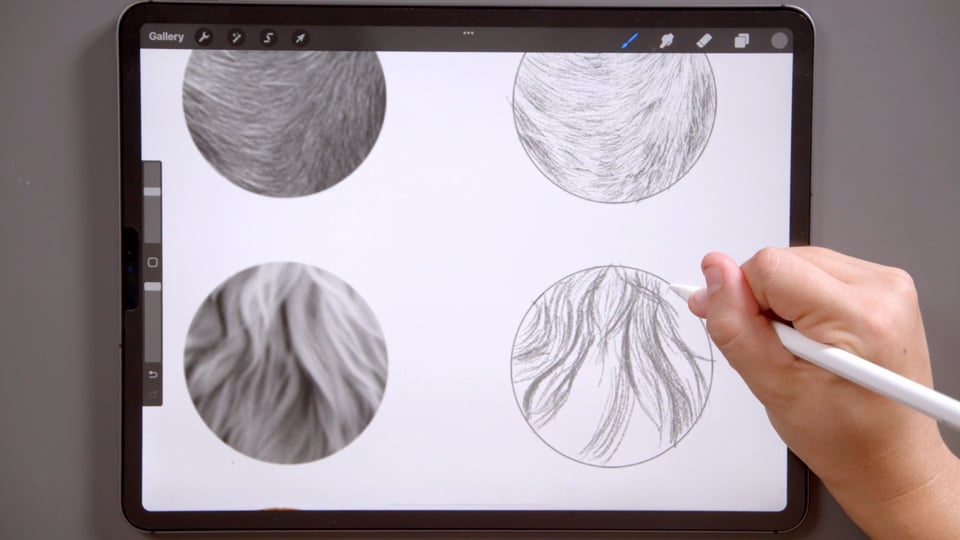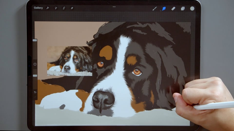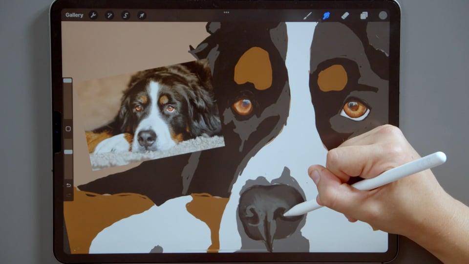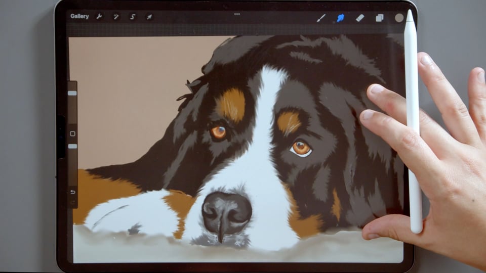 קורס ציור כלבים עם אפליקציית Procreate, טכניקת ציור פרווה, עיניים, אף של כלבים.